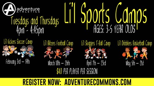 League Description: These are our sports camps run for 3-5 year olds at Adventure Commons. Each camp has limited enrollment (20 Players)