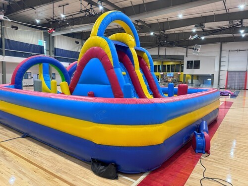 The Pro Inflatable is the castle bounce house with the 18' slide & the obstacle course.