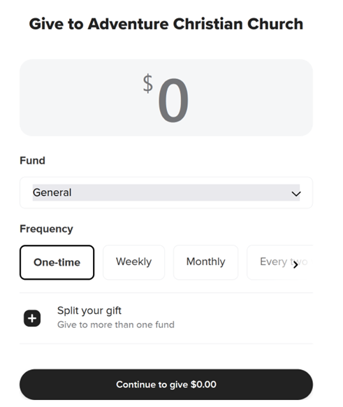 Online giving has never been easier! Just fill out the box to the right, check the frequency you prefer to give, and click next!
